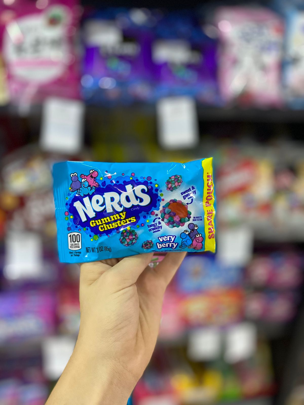 Goma Com Recheio De Suco De Frutas Roxas Cobertas Com Balinhas Nerds 85g