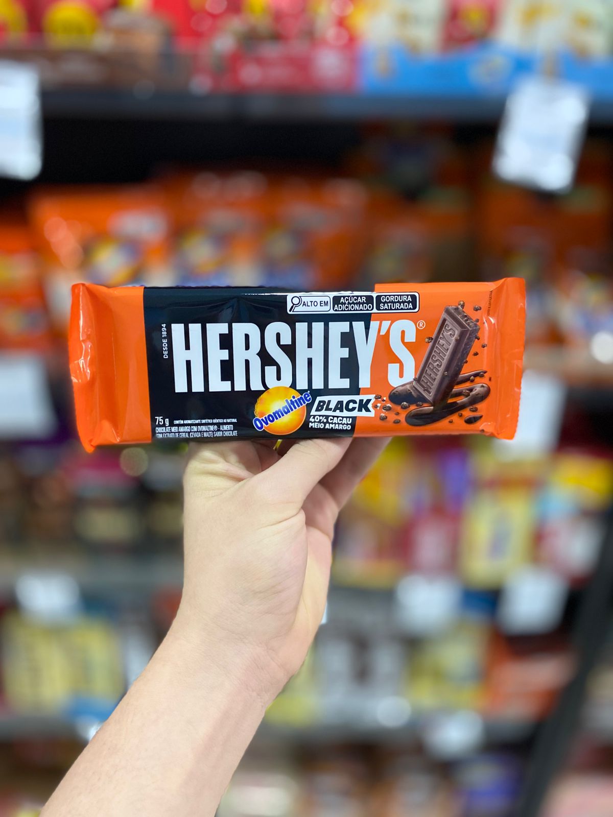 Barra de chocolate meio amargo com recheilo de ovomaltine 75g