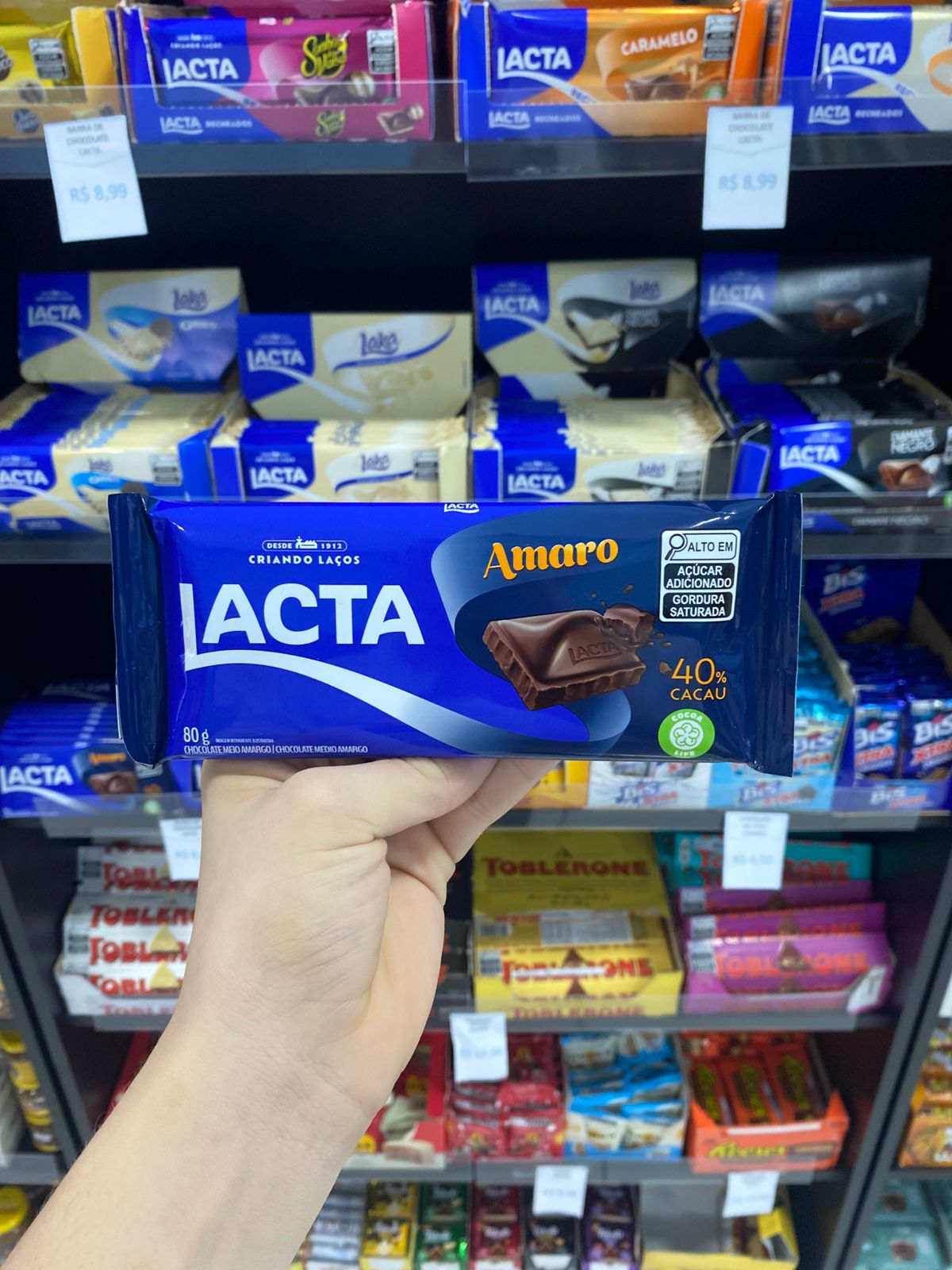 Barra de chocolate meio amargo Lacta 80g