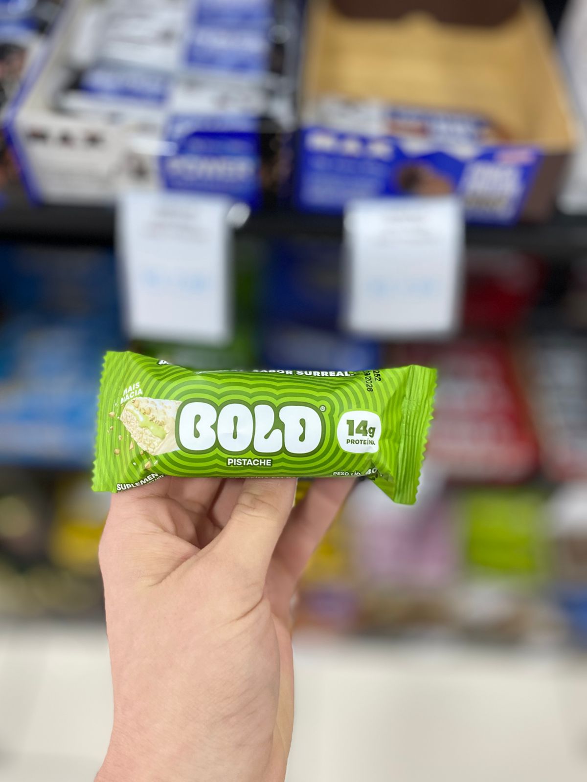 é um snack proteico com recheio cremoso de pistache, cobertura de chocolate branco diet e sem adição de açúcar; contém valor energético de 205 kcal, 16 gramas de carboidratos, 20 gramas de proteínas, 9 gramas de gorduras totais, 5 gramas de fibra alimentar e 70 miligramas de sódio.