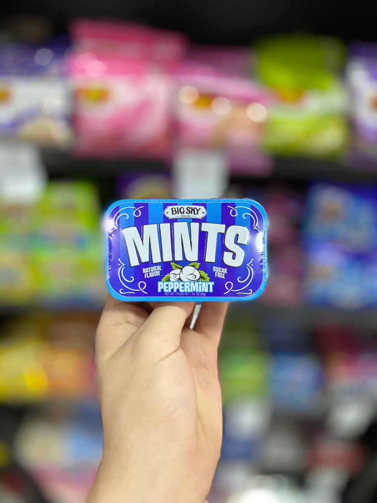 BIG SKY SUGAR FREE MINTS PEPPERMINT, é uma deliciosa bala zero açúcar com sabor de hortelã.