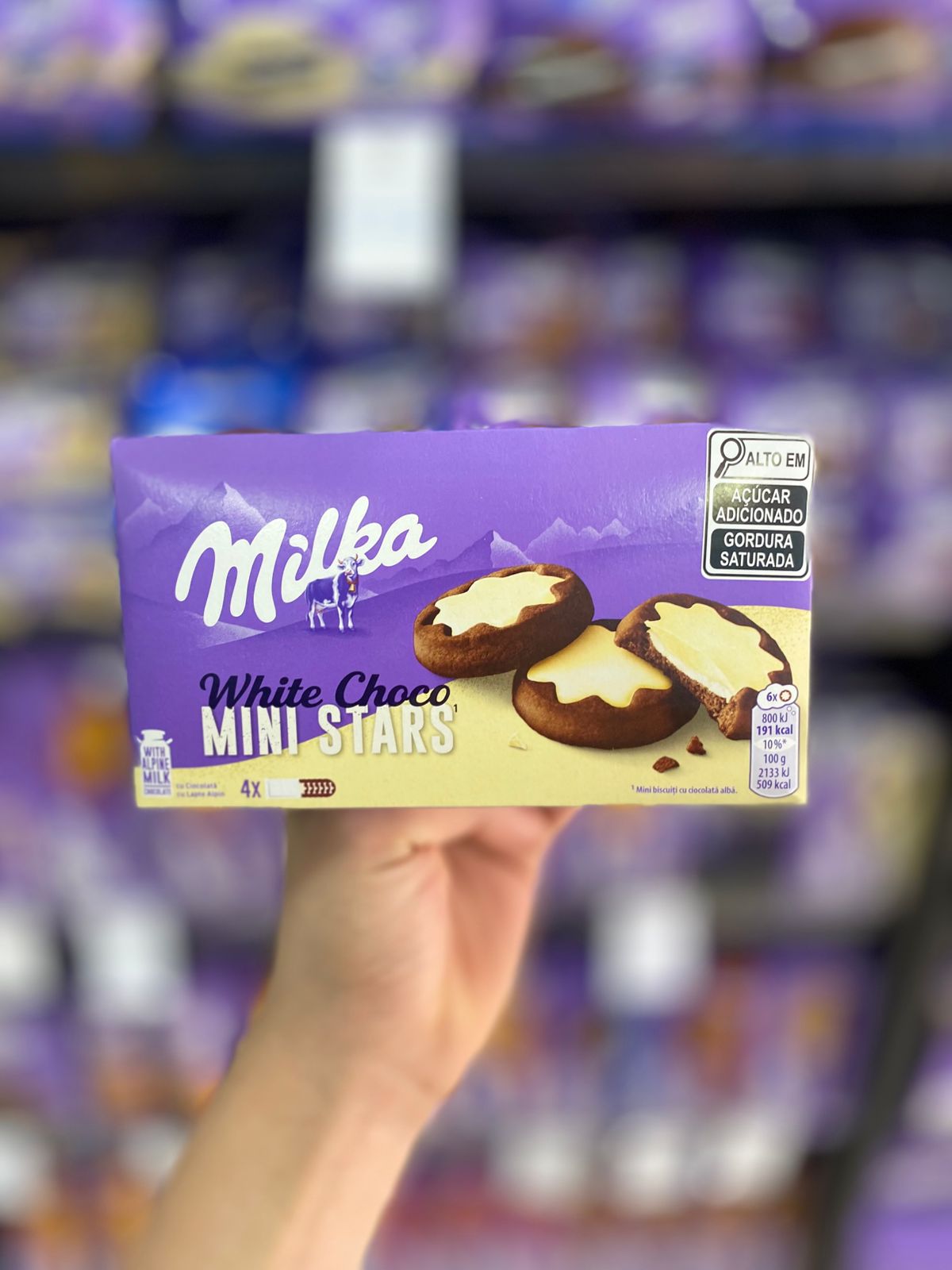 Biscoito de cacau com recheio de leite coberto com chocolate branco 150g