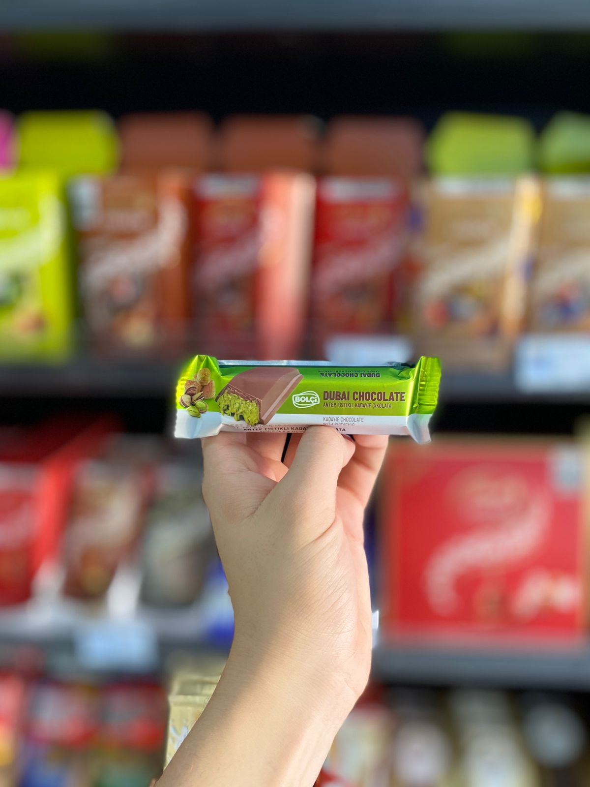 Chocolate Kadayif de Dubai com recheio de creme de pistache e pedaços de pistache !!