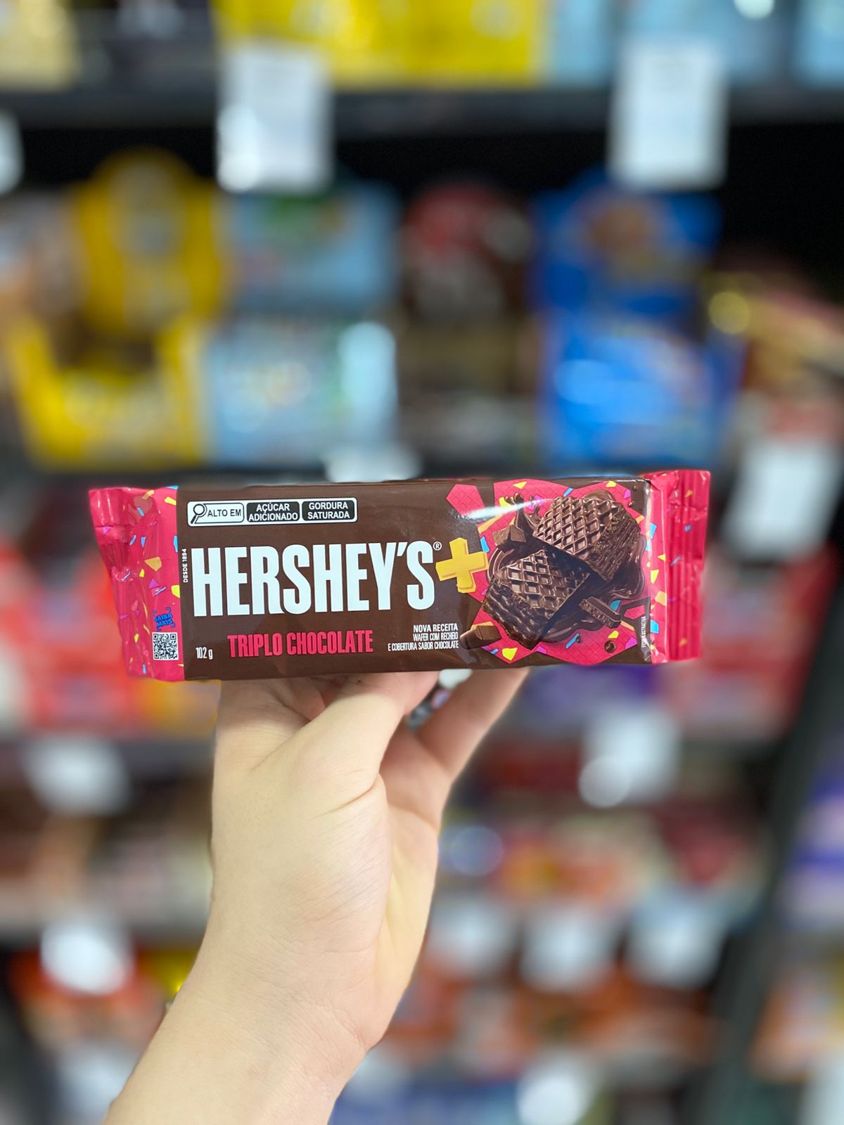 wafer crocante com três camadas de chocolate: cobertura, recheio e o próprio wafer