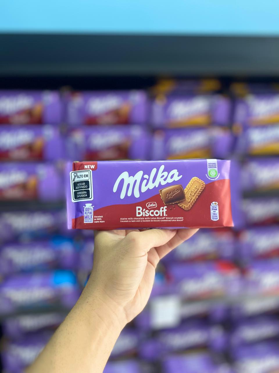 chocolate ao leite com recheio cremoso sabor biscoito caramelizado e pedaços de Biscoff lotus