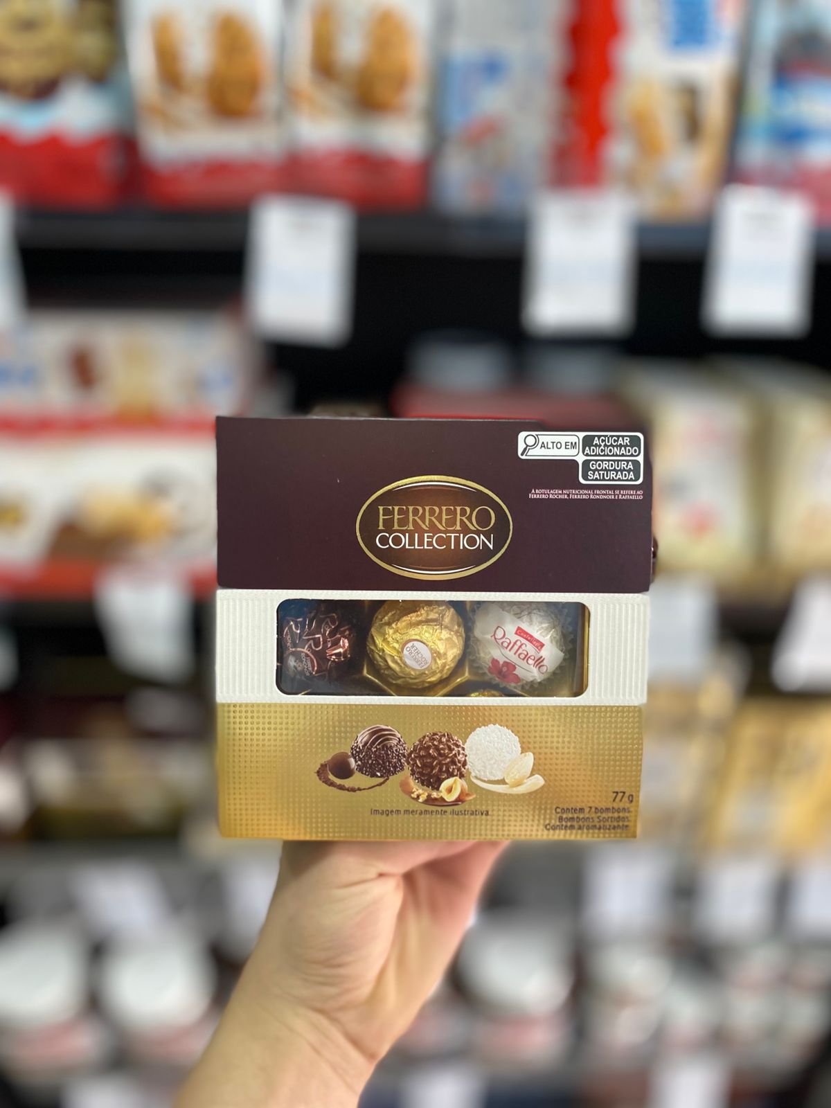 Linda caixa presenteavel com 7 bombons ( 3 ferrero ao leite, 2 Ferrero Dark e 2 Raffaello. Perfeito Para presentear quem ama toda linha ferrero rocher
