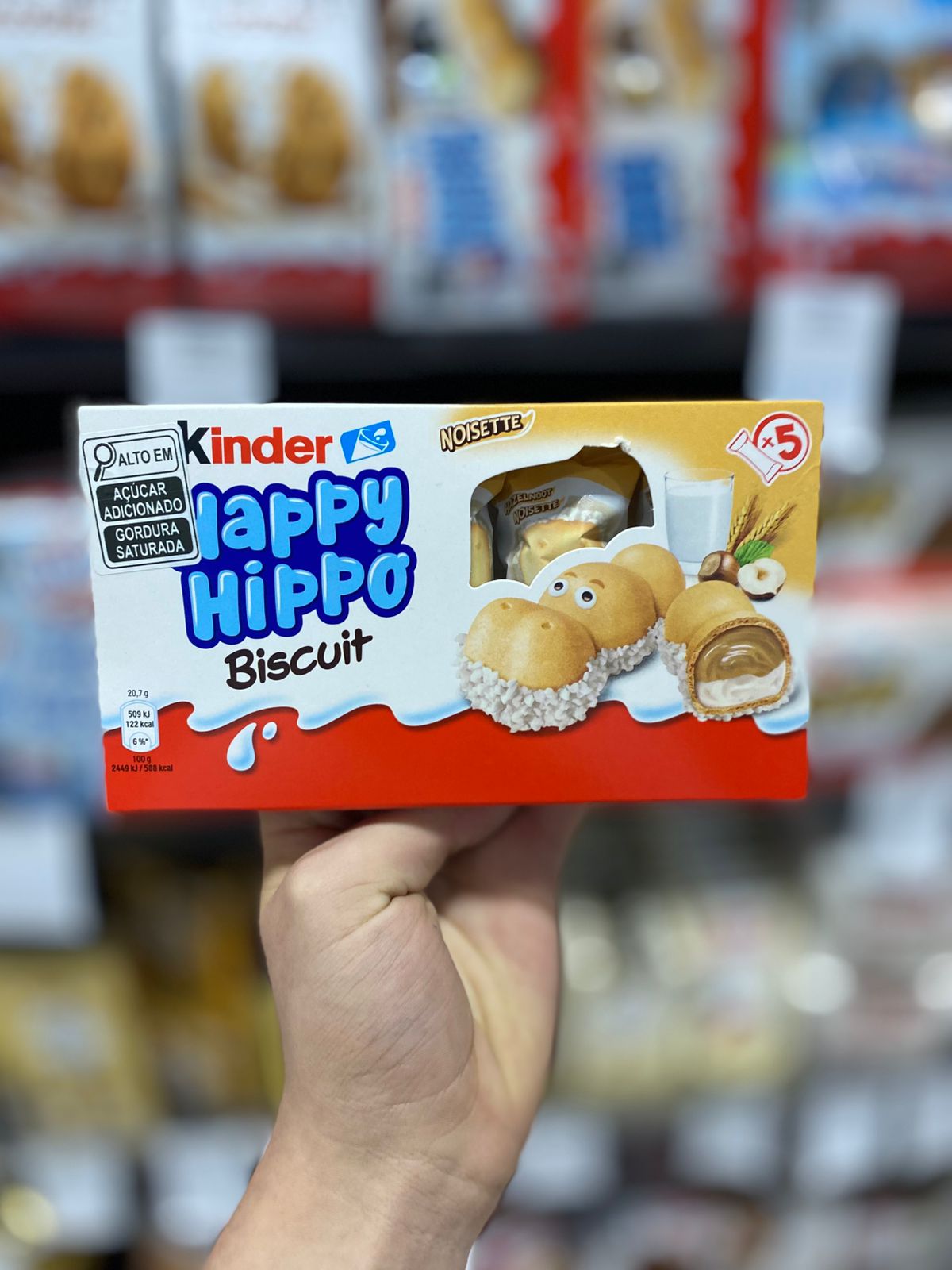 KINDER HAPPY HIPPO HASELNUSS é um incrivel wafer com recheio de avelã e formato de hipopótamo.