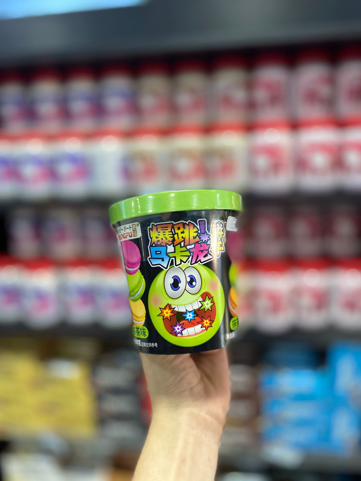 pote com macarrons coloridos no sabor matcha que explodem na boca
