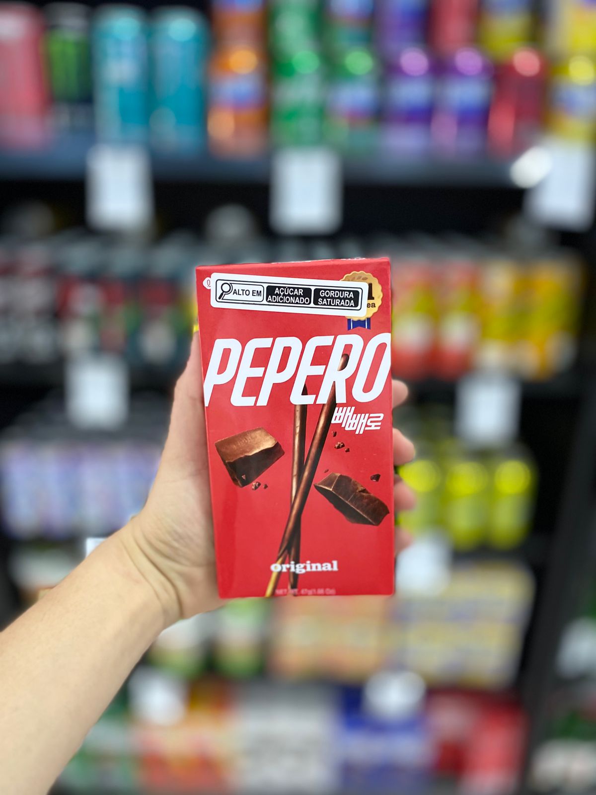Palitos de biscoito crocante com cobertura de chocolate ao leite. Produto produzido e importado da Coréia do Sul.