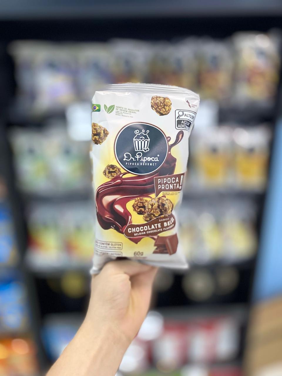 Deliciosa pipoca doce caramelizada com sabor de Chocolate Belga 60g