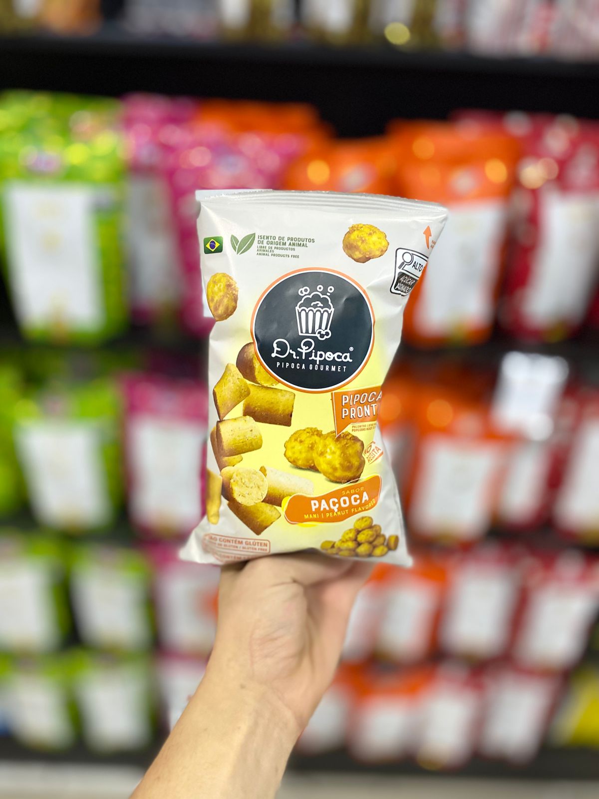 Deliciosa pipoca caramelizada com sabor de Paçoca de amendoim.